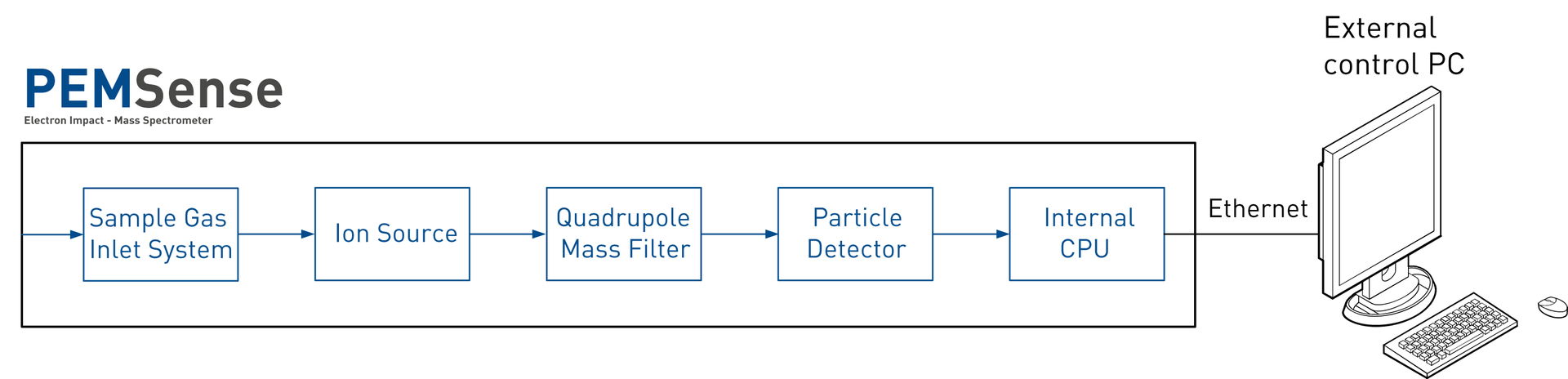 Die PEMSense ist ein klassisches Quadrupol Massenspektrometer mit Elektronenstoß Ionisierung (EI-MS) für die Online-Mehrkomponenten-Gasanalyse.