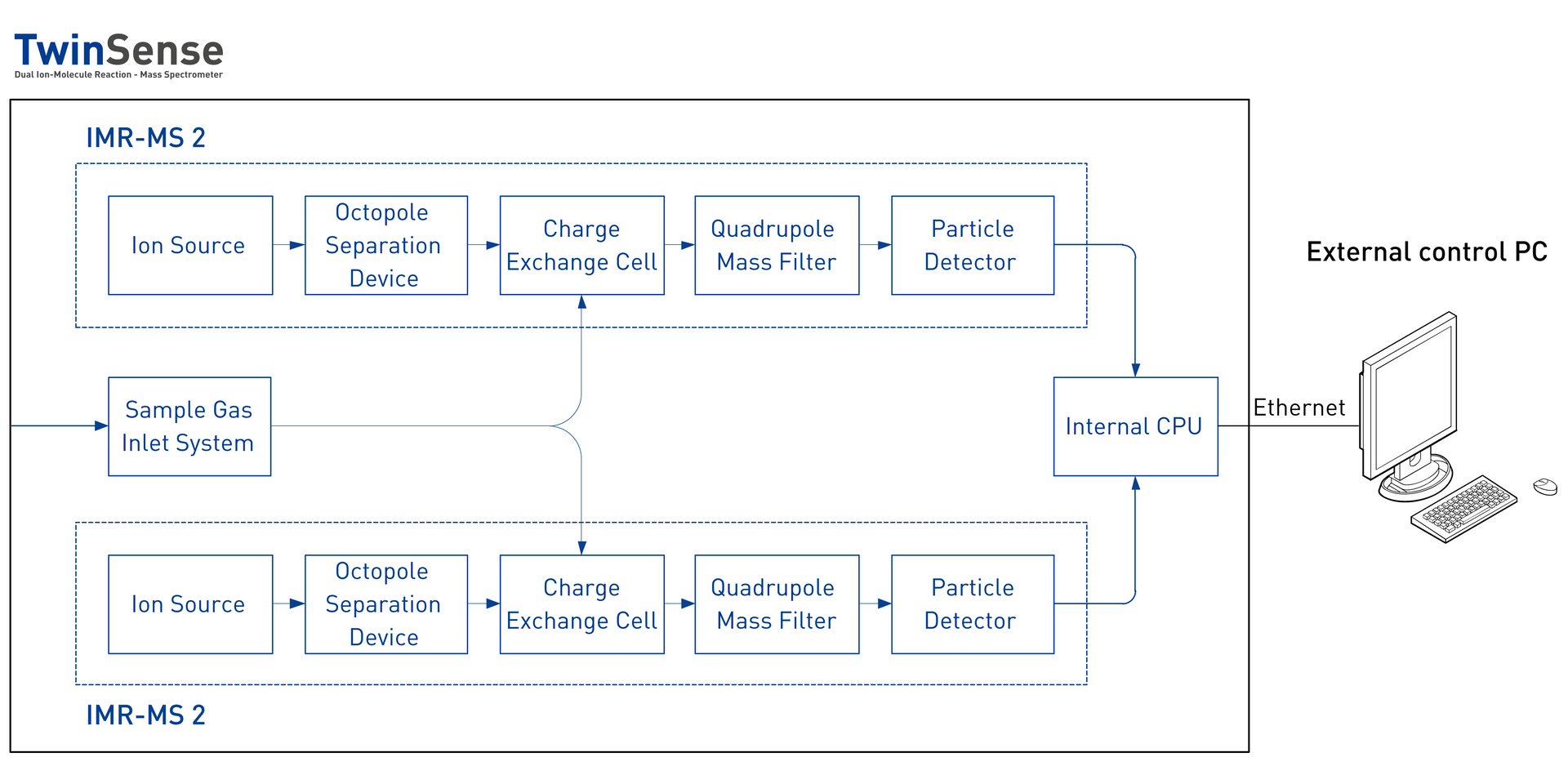 Die TwinSense ist ein Doppel-MS basierend auf dem Prinzip zweier vollständiger IMR-MS Massenspektrometer, die parallel auf einer Plattform arbeiten.